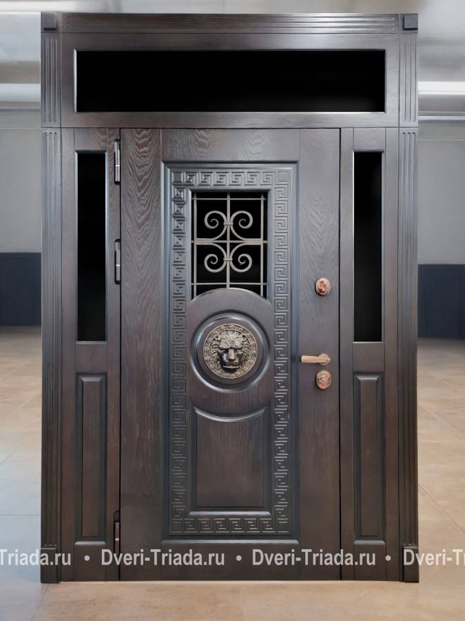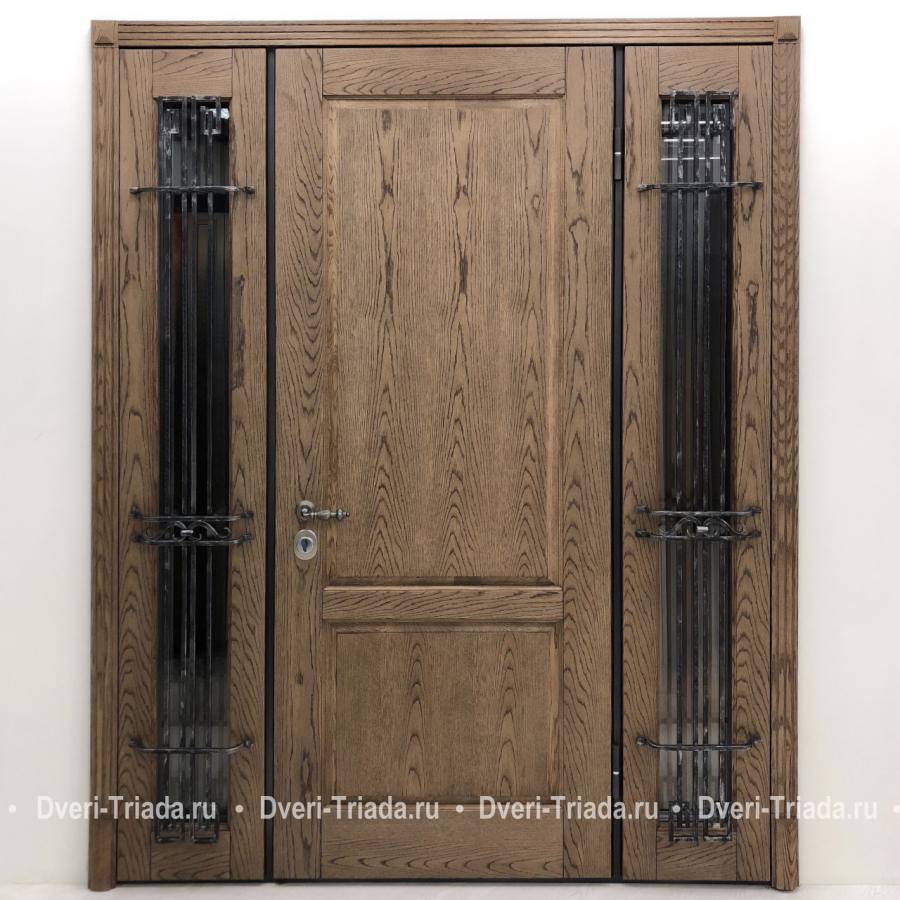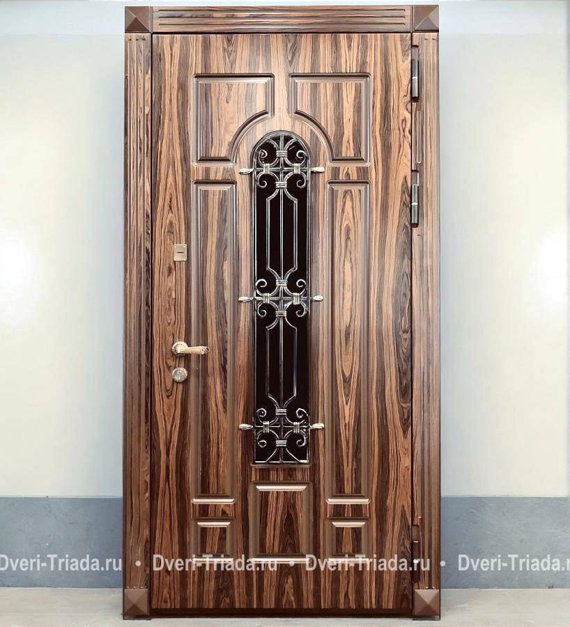 Входная непромерзающая термодверь с окном и ковкой (плиты МДФ) Арт-642